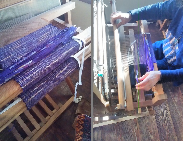 カットした布を横糸として織っていきます。